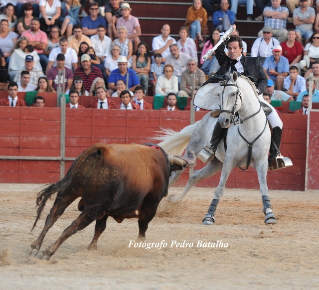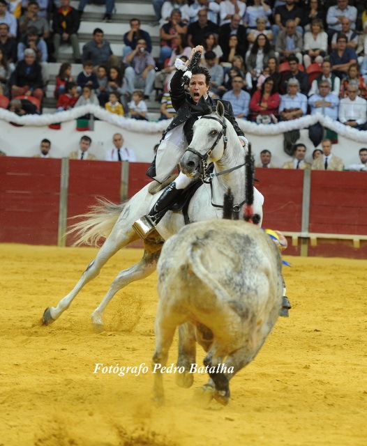 Depois agigantou-se, alegrou-se e foi protagonista de uma lide memorável, iniciada com dois ferros compridos de poder a poder, dando toda a prioridade ao oponente. Nos curtos, mandou e templou ladeando a investida franca do exemplar de Prudêncio, cravando ferros de muito boa nota, com vistosos remates, terminando com a marca da casa, o par de bandarilhas, o salto do cavalo, a apoteose total - e a recordação da memória daquele que foi uma das maiores e mais importantes figuras do toureio a cavalo no último século, o nosso querido Joaquim Bastinhas.