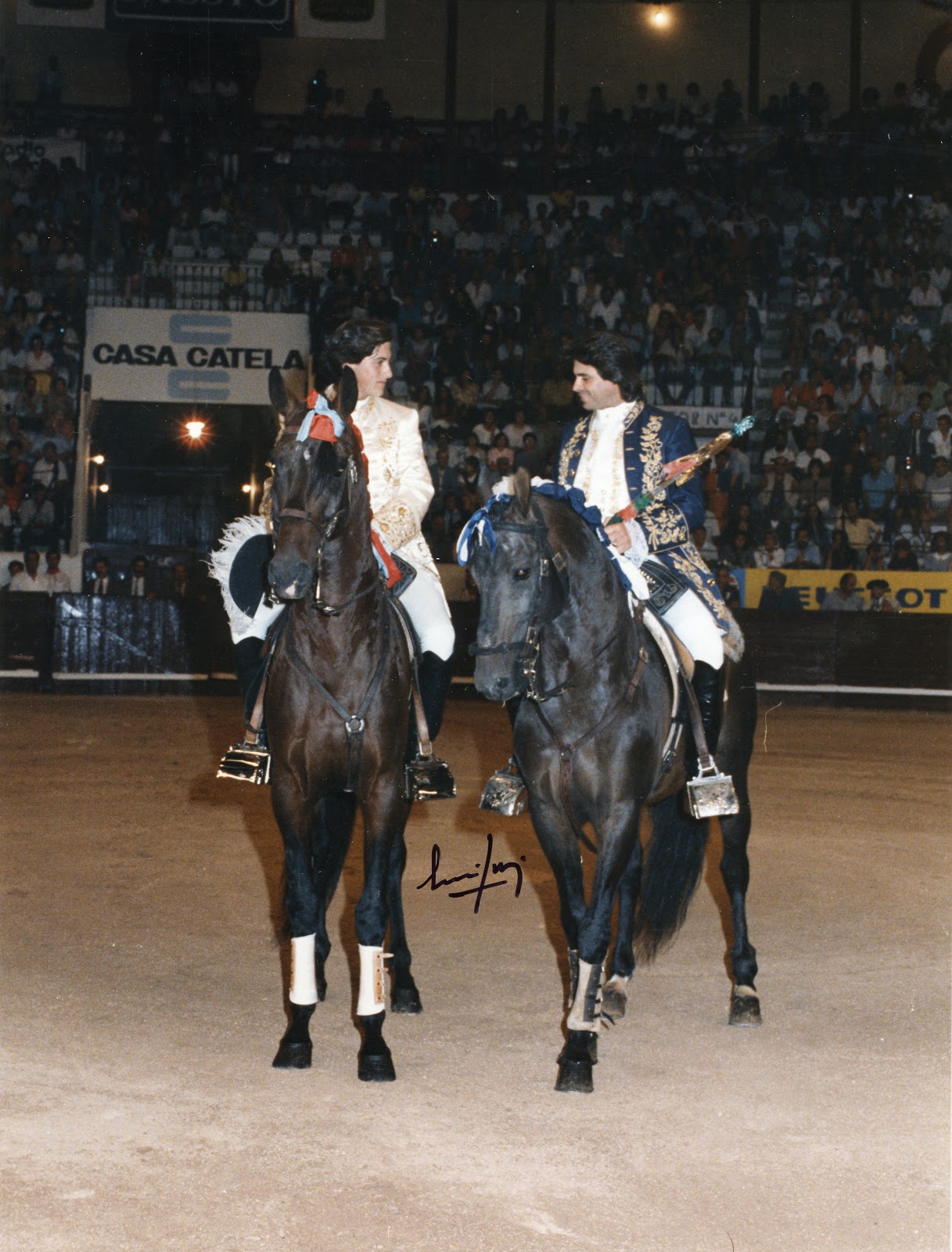 João Ribeiro Telles confirmando a alternativa a Joaquim Bastinhas na praça de toiros do Campo Pequeno, na noite de 14 de Julho de 1983, tendo sido testemunha Paulo Caetano.