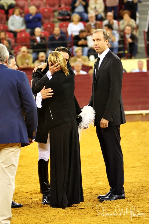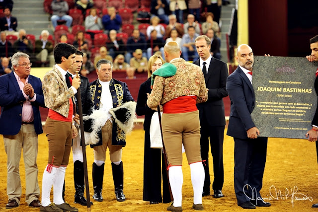 Depois agigantou-se, alegrou-se e foi protagonista de uma lide memorável, iniciada com dois ferros compridos de poder a poder, dando toda a prioridade ao oponente. Nos curtos, mandou e templou ladeando a investida franca do exemplar de Prudêncio, cravando ferros de muito boa nota, com vistosos remates, terminando com a marca da casa, o par de bandarilhas, o salto do cavalo, a apoteose total - e a recordação da memória daquele que foi uma das maiores e mais importantes figuras do toureio a cavalo no último século, o nosso querido Joaquim Bastinhas.
